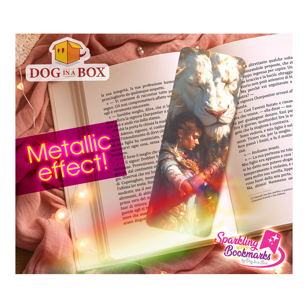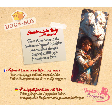 Woman and Lion bookmark n.1 - metallic-holo effect bookmark, D&D fantasy style