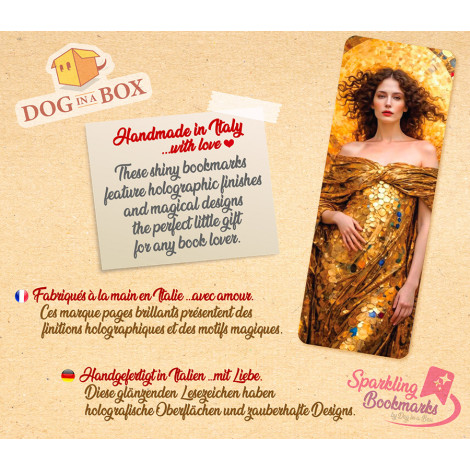 Woman in gold bookmark n.4 - metallic-holo effect bookmark, Klimt style golden bookmark
