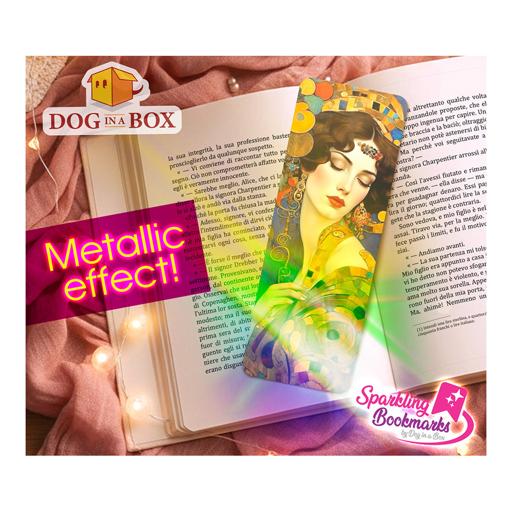 Woman in gold bookmark n.8 - metallic-holo effect bookmark, Klimt style golden bookmark