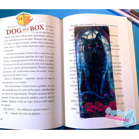 Black cat Bookmark n.2 - Handmade Transparent Bookmark | Crystal, Stained Glass Effect | esoteric bookmark
