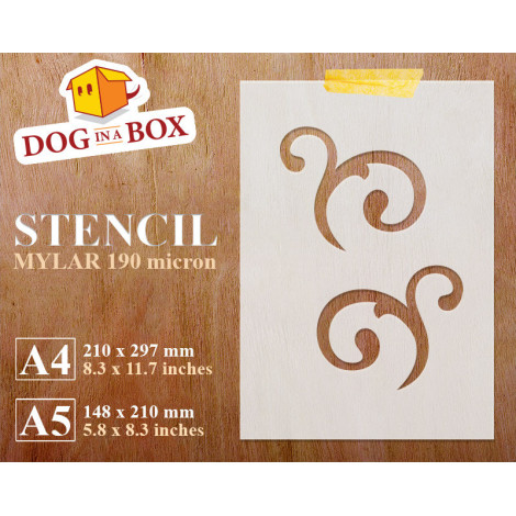 -> A4 sheet - stencil size: 13 cm x 11 cm (5.1" x 4.3") each symbol