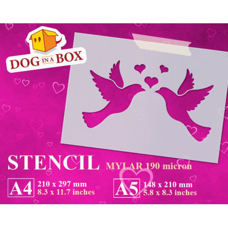 Reusable doves in love stencil for painting on wood, walls or fabrics.