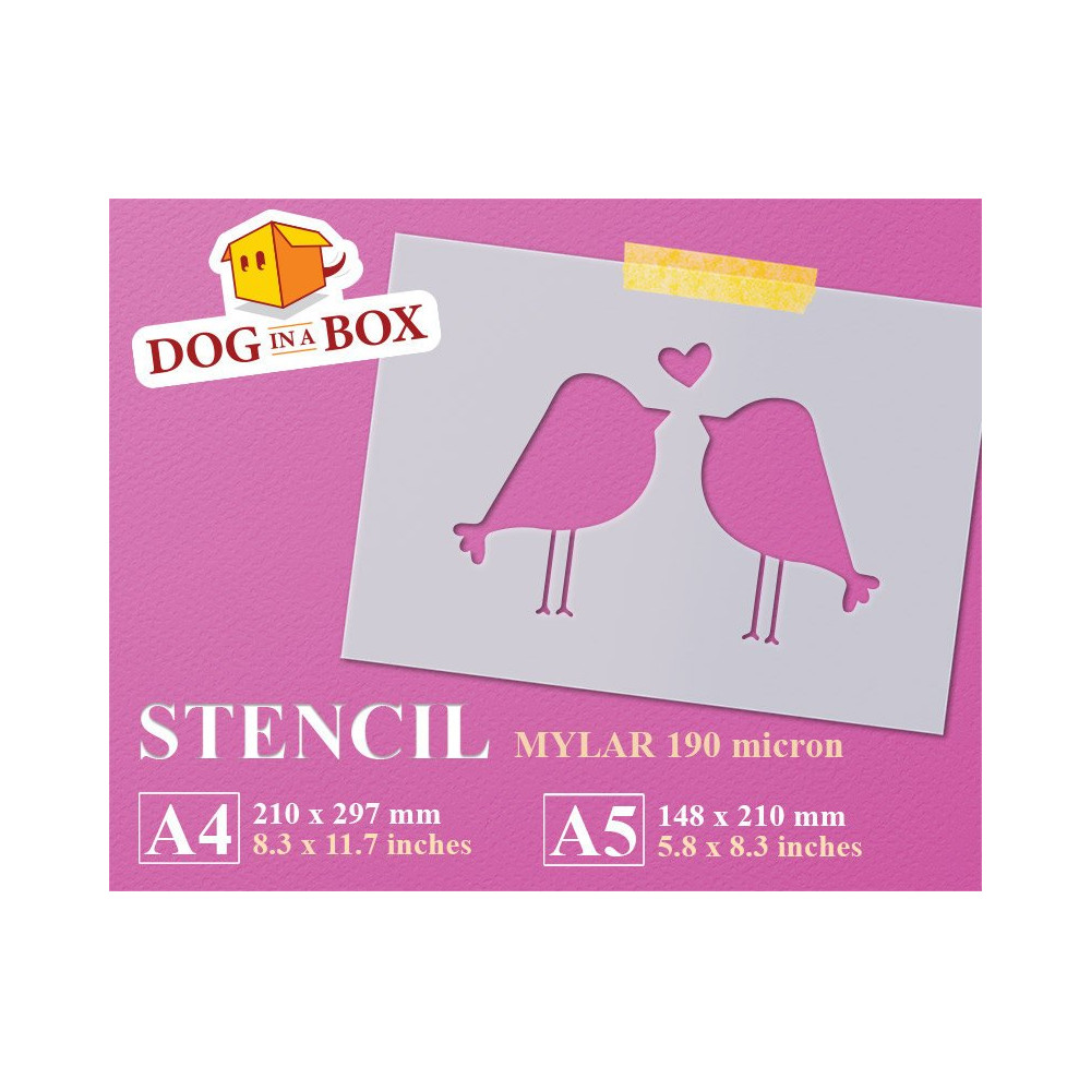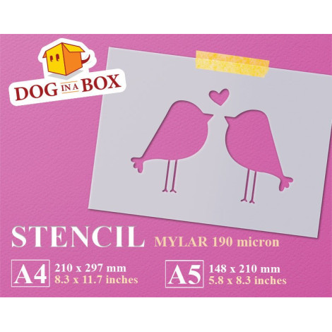 Reusable love birds stencil for painting on wood, walls or fabrics.