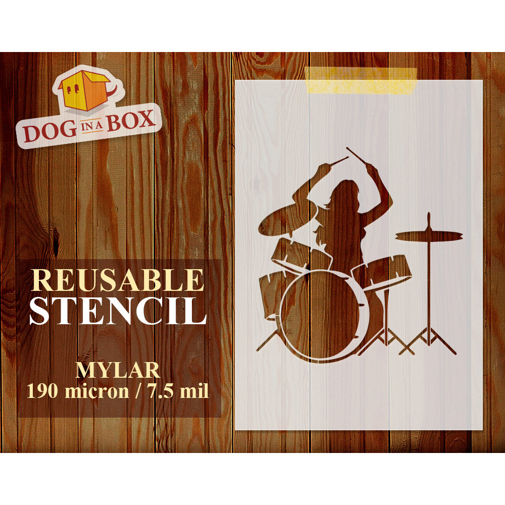 Drummer girl stencil - Reusable Rock band stencil, drum stencil, music stencil