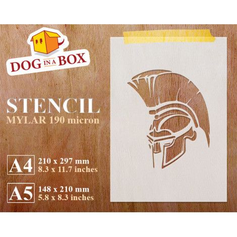 Spartan Helmet stencil for painting on wood, walls and fabrics.
