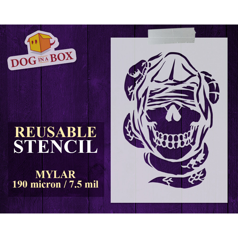 Skull stencil for painting on wood, walls and fabrics.