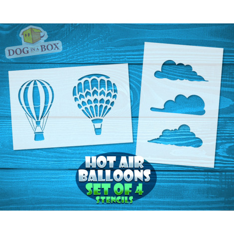 This is a set of 4 stencil sheets and it includes a total of 4 hot air balloons and 3 clouds