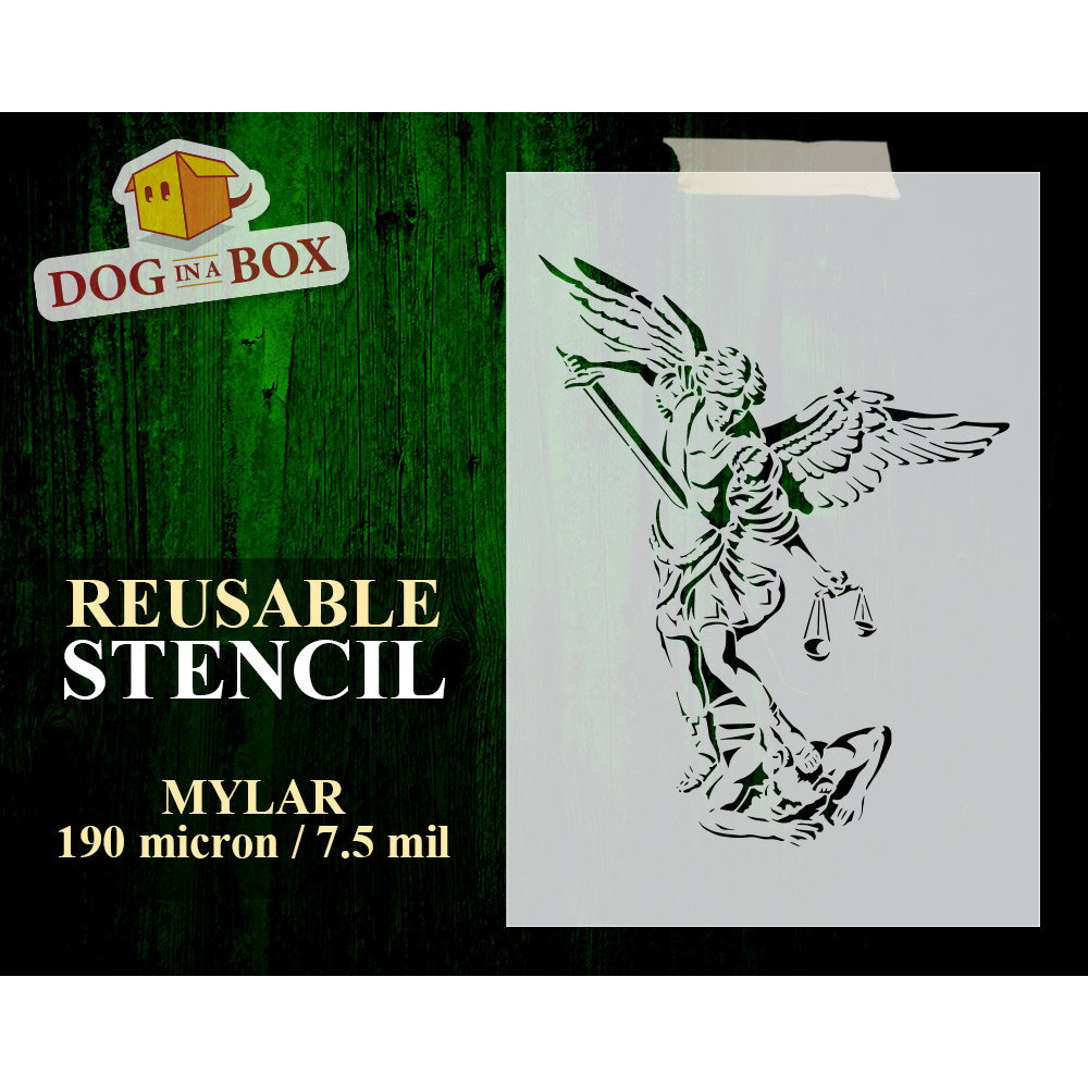 Pochoir réutilisable de Saint Michel pour le bois, les murs et les tissus.