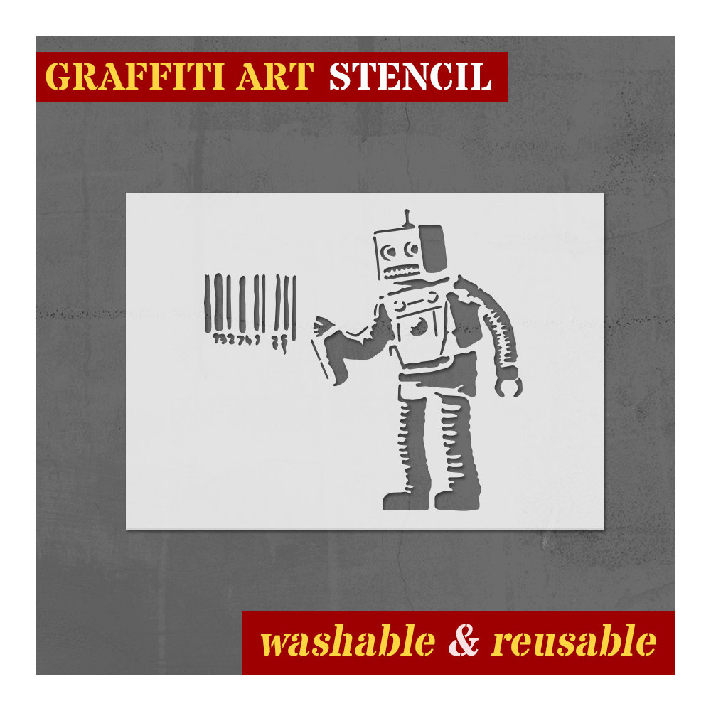 Robot Pochoir n.1 - Street Art Pochoir pour la peinture. Code à barre Pochoir de graffiti.