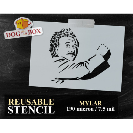 Pochoir Albert Einstein n.2 - Pochoir de génie réutilisable pour panneaux en bois, peinture murale, tissus et décoration