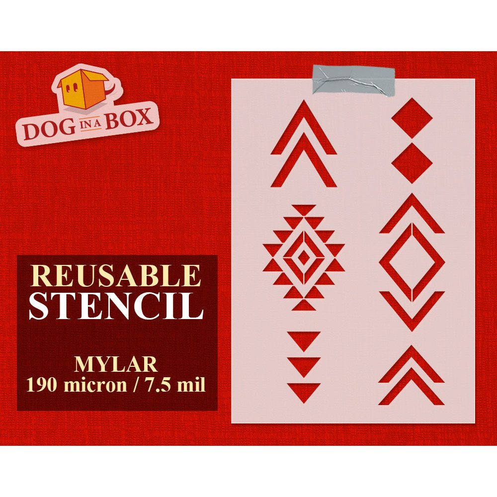 Pochoir de motif amérindien réutilisable pour la peinture sur bois, murs ou tissus.