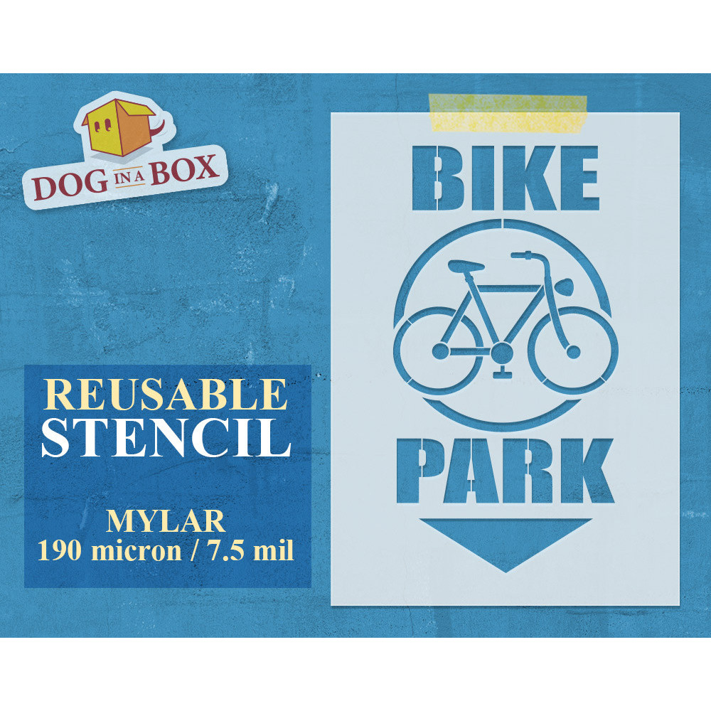 Pochoir Bike Park n. 1 - Pochoir réutilisable pour parking à vélos, pochoir vélo, panneau parking à vélos