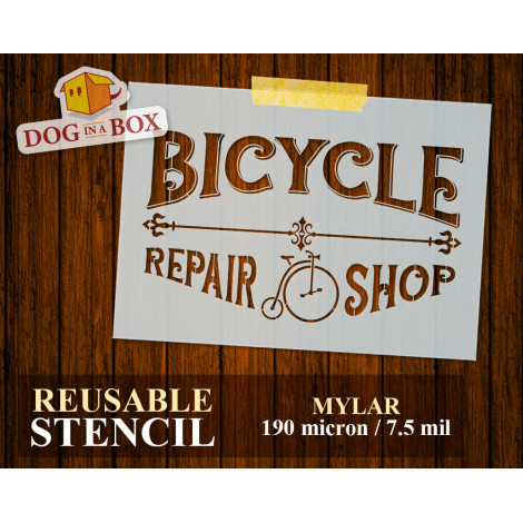 Pochoir "Bicycle Repair Shop" n.1 - Pochoir de signe vintage réutilisable pour la décoration murale