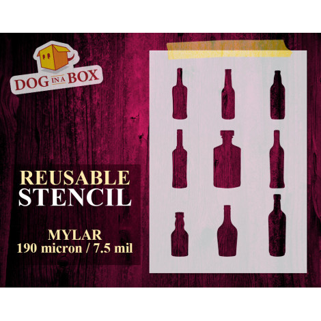 Pochoir bouteilles n.1 - Pochoir réutilisable avec de nombreuses bouteilles de différentes tailles, parfait pour la peinture
