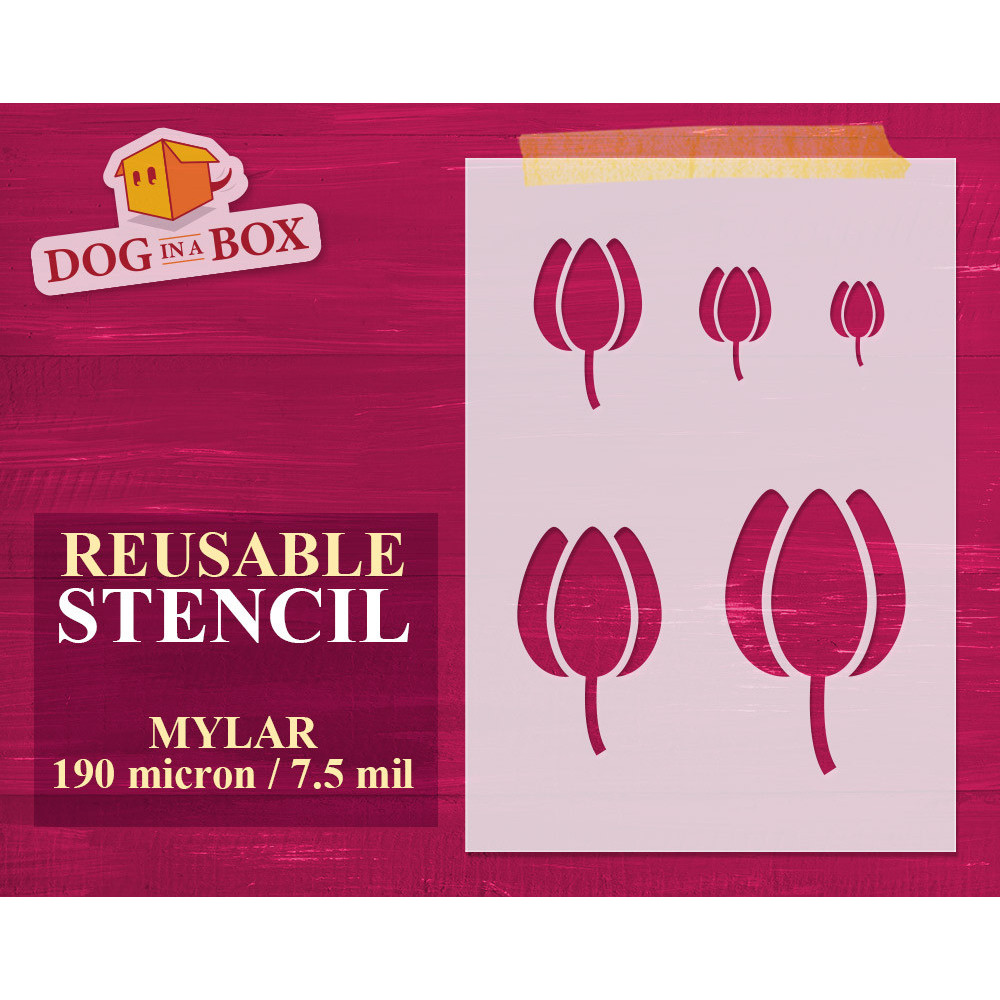 Pochoir Fleurs set n.4 - Pochoir réutilisable avec de nombreux tulipes de différentes tailles, parfait pour la peinture