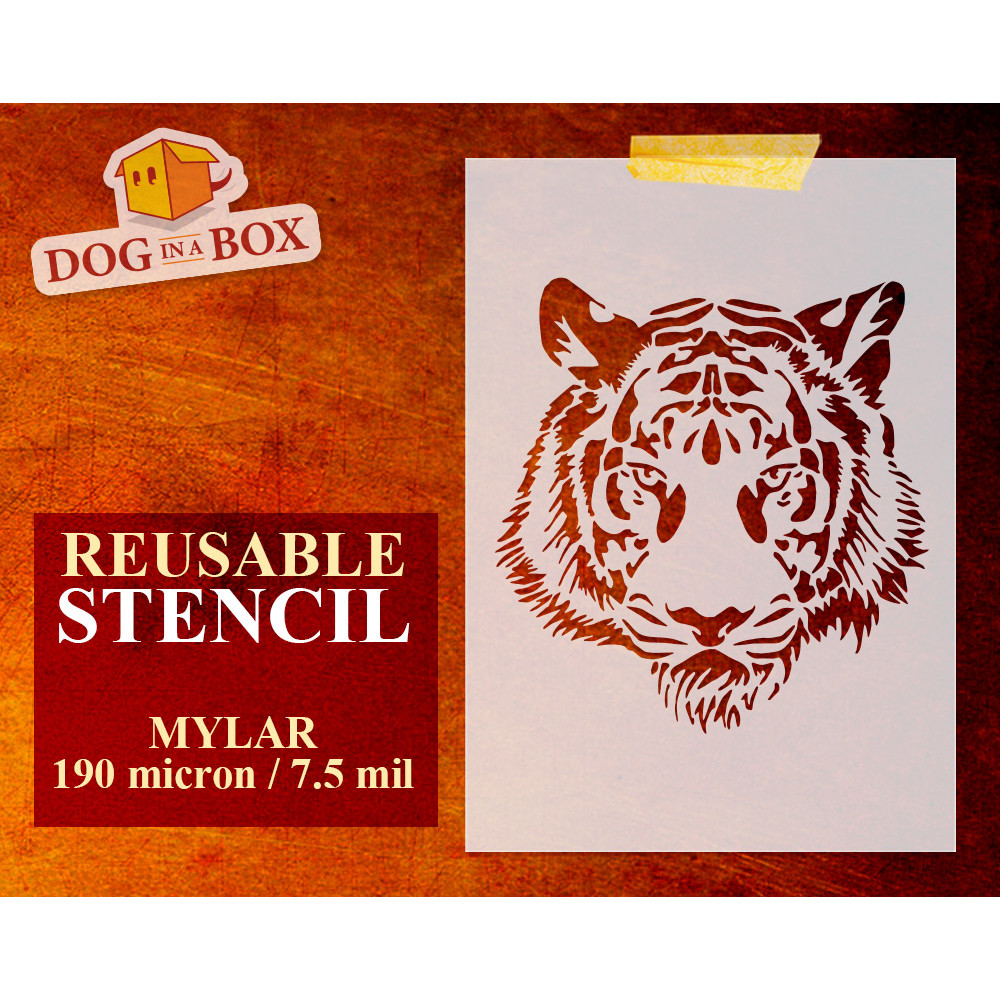 Pochoir tigre réutilisable pour la peinture sur bois, murs ou tissus.
