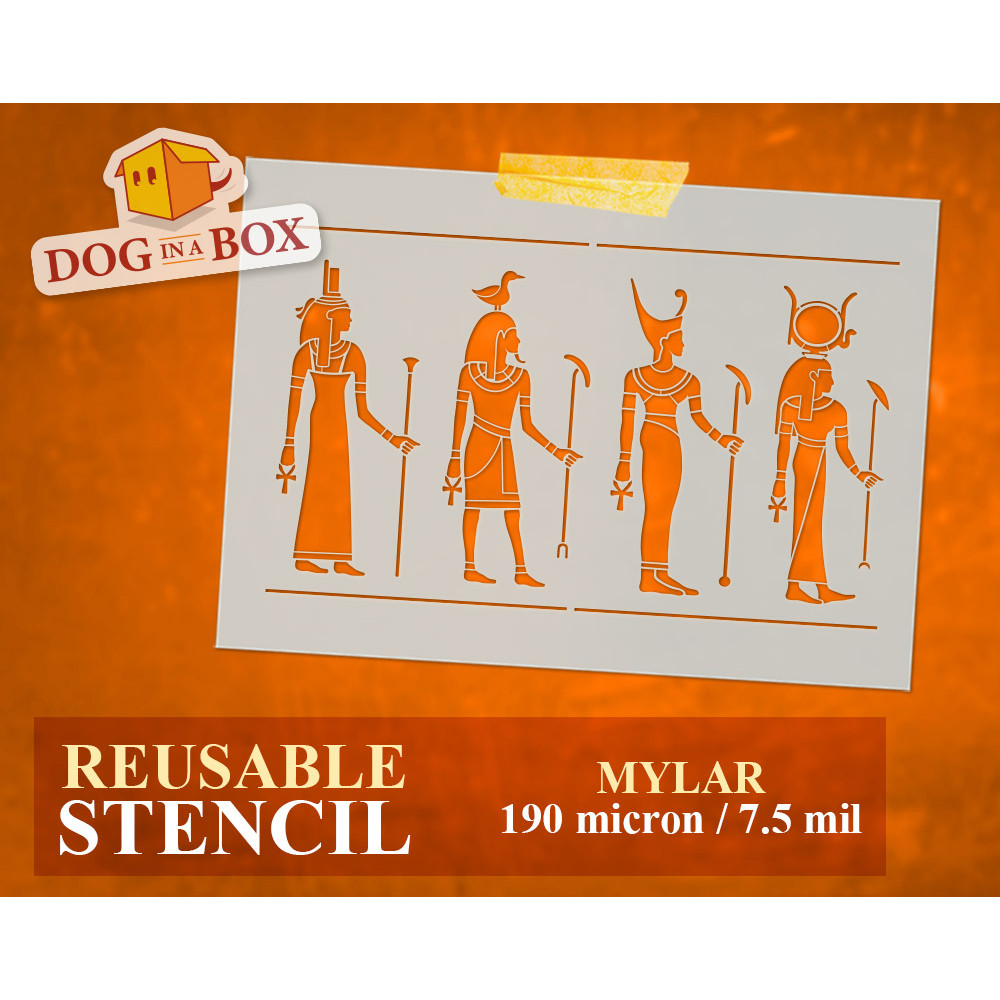 Pochoir de hiéroglyphes n.6 - Pochoir réutilisable de dieux égyptiens, motif géométrique sans couture pour les murs et les tissu