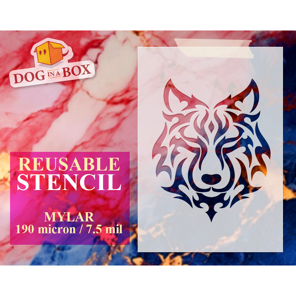 Pochoir de loup réutilisable pour la peinture sur bois, murs ou tissus.