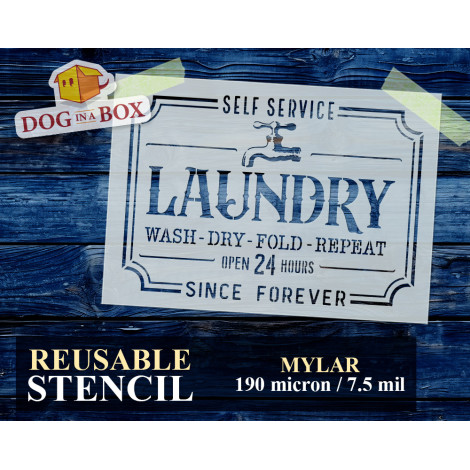 Pochoir réutilisable "Laundry" pour la peinture sur bois, tissus et murs.