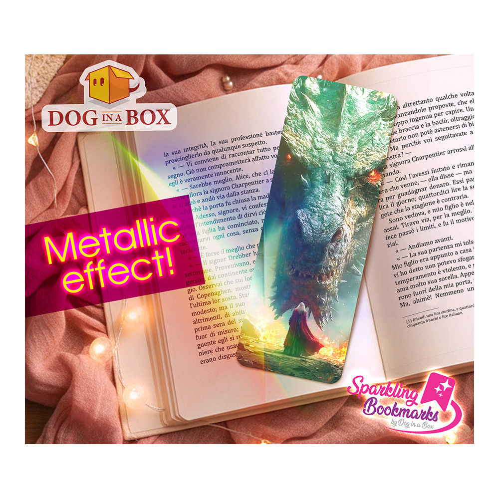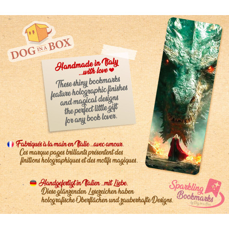 Marque-page dragon et sorcier n.2 - marque-page effet métallisé-holo, style fantasy