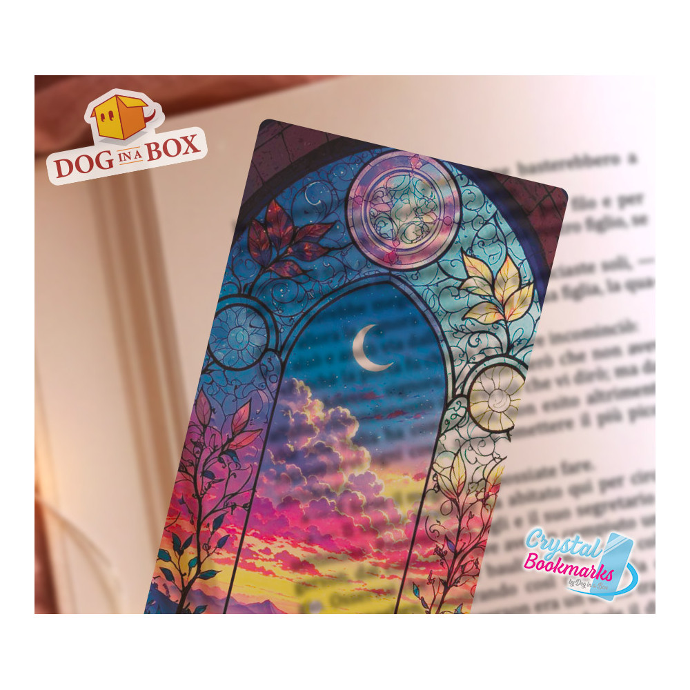 Marque-page Jour et nuit n.5 - Marque-page transparent fait main | Effet vitrail, cristal | Soleil et lune
