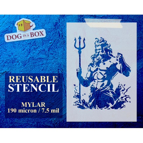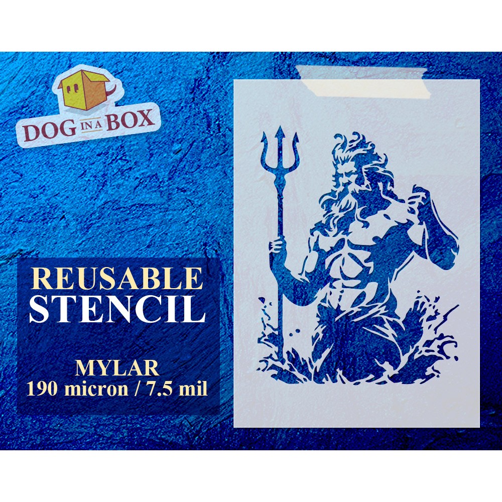Pochoir Neptune n.1 : Pochoir Poséidon réutilisable pour peindre sur les murs, le bois, les tissus, les meubles et la décoration