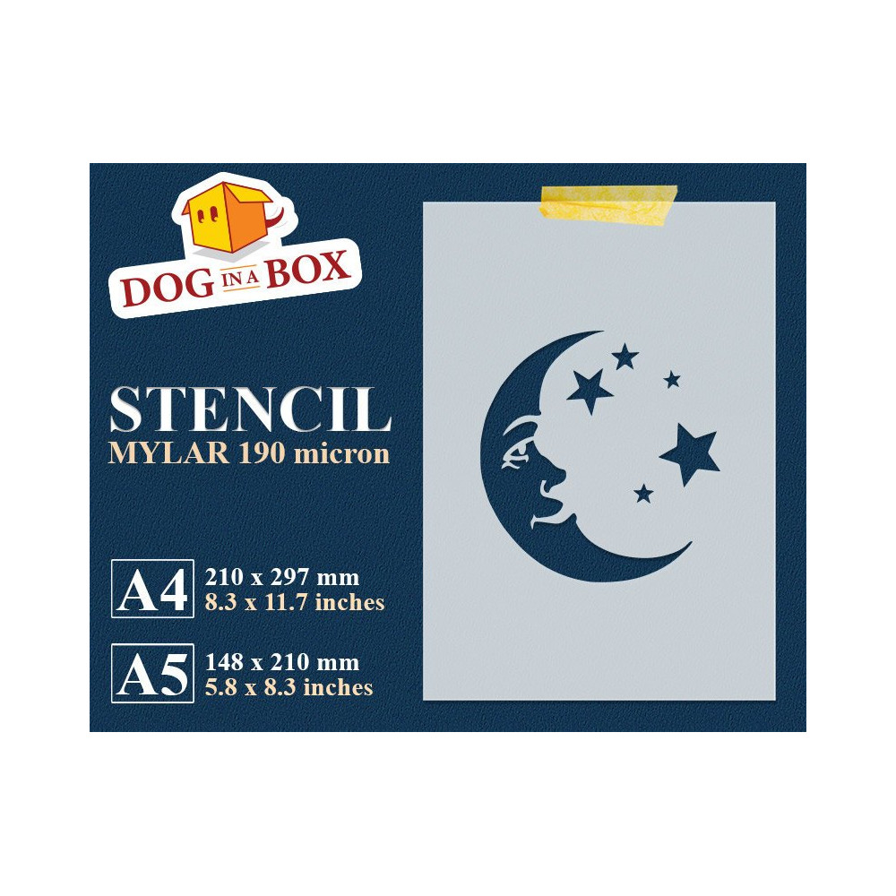Pochoir Lune et étoiles pour la peinture sur bois, murs et tissus.