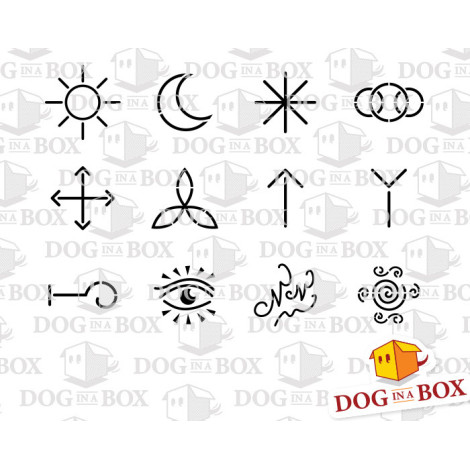 Vous achetez un ensemble de 2 feuilles de pochoir avec 24 runes wiccan , faites de Mylar 190 microns sans danger pour les aliments (approuvé par la FDA) avec un film de polyester résistant aux solvants.