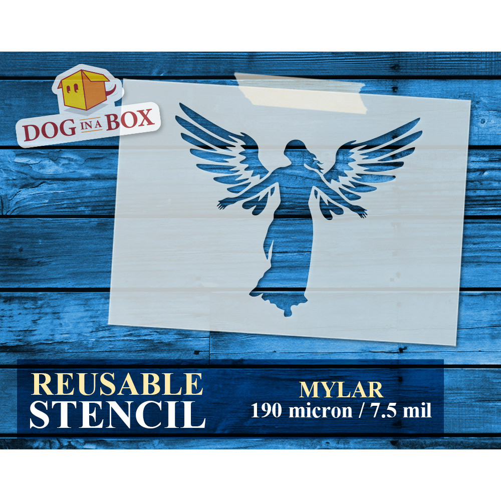 Pochoir Ange n.2 - Pochoir chrétien réutilisable. Ange avec des ailes grandes ouvertes, pochoir pour peinture