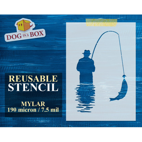 Pochoir de pêche n ° 3 - Pochoir de pêcheur réutilisable pour panneaux, murs ou tissus en bois.