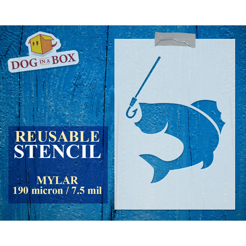 Pochoir de pêche réutilisable pour la peinture sur bois, murs ou tissus.
