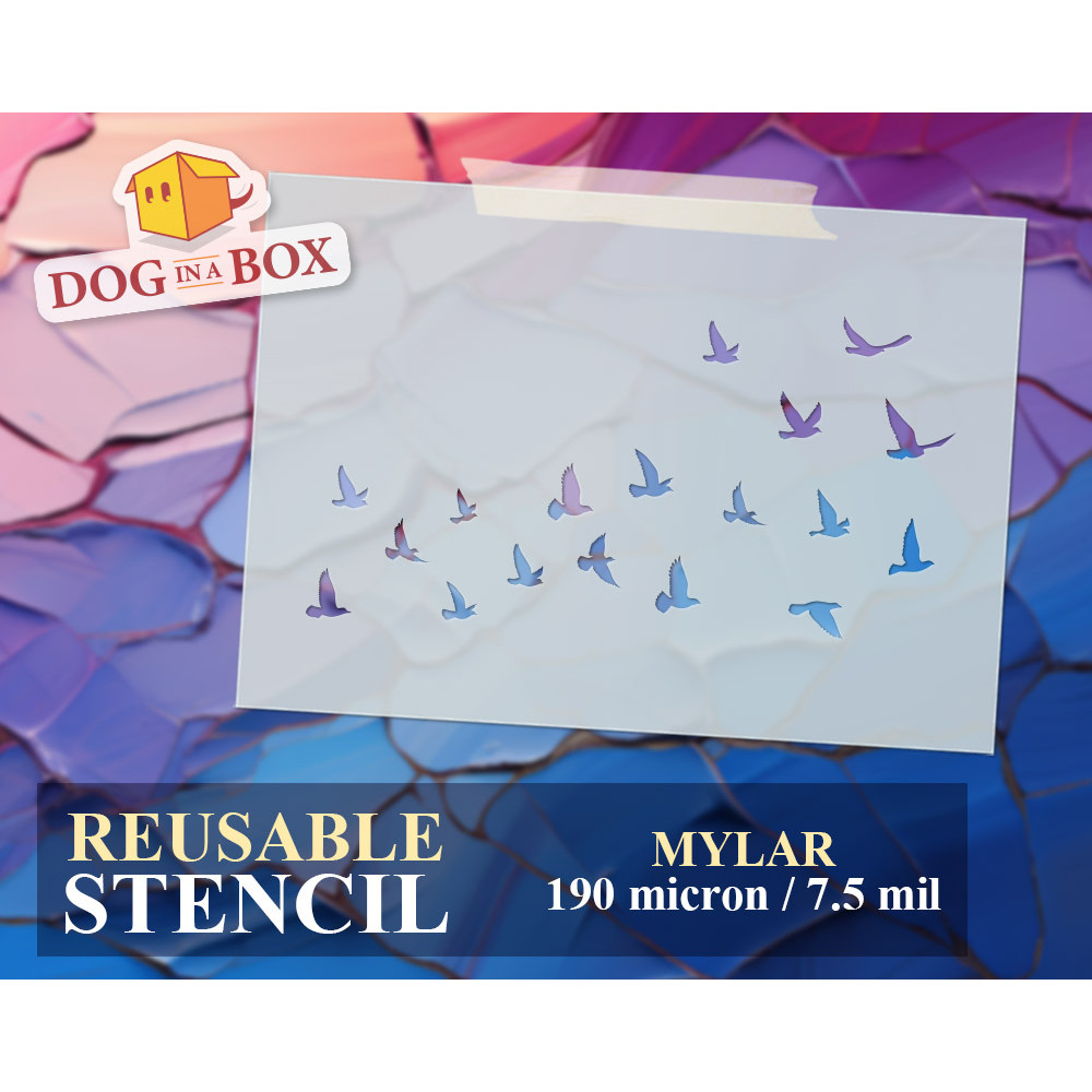 Pochoir réutilisable oiseaux volants pour la peinture sur bois, murs ou tissus.
