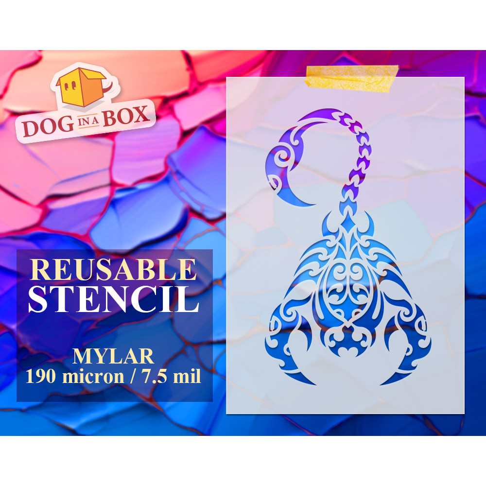 Pochoir scorpion réutilisable pour la peinture sur bois, murs ou tissus.