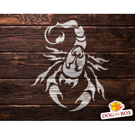 Pochoir scorpion réutilisable pour la peinture sur bois, murs ou tissus.
