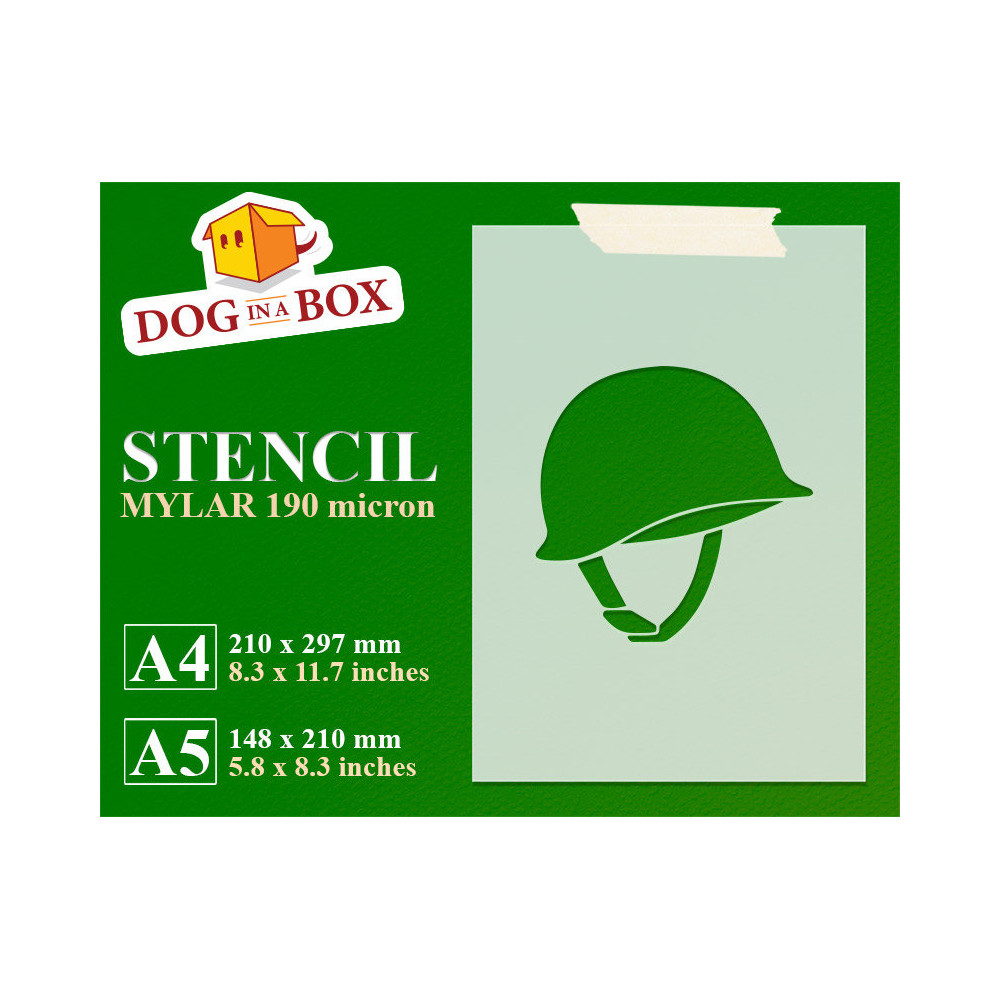 Pochoir de casque militaire pour la peinture sur bois, murs et tissus.