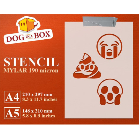 -> Feuille A4 - taille du pochoir: 9 cm x 9 cm (3,5 "x 3,5") chaque émoticône