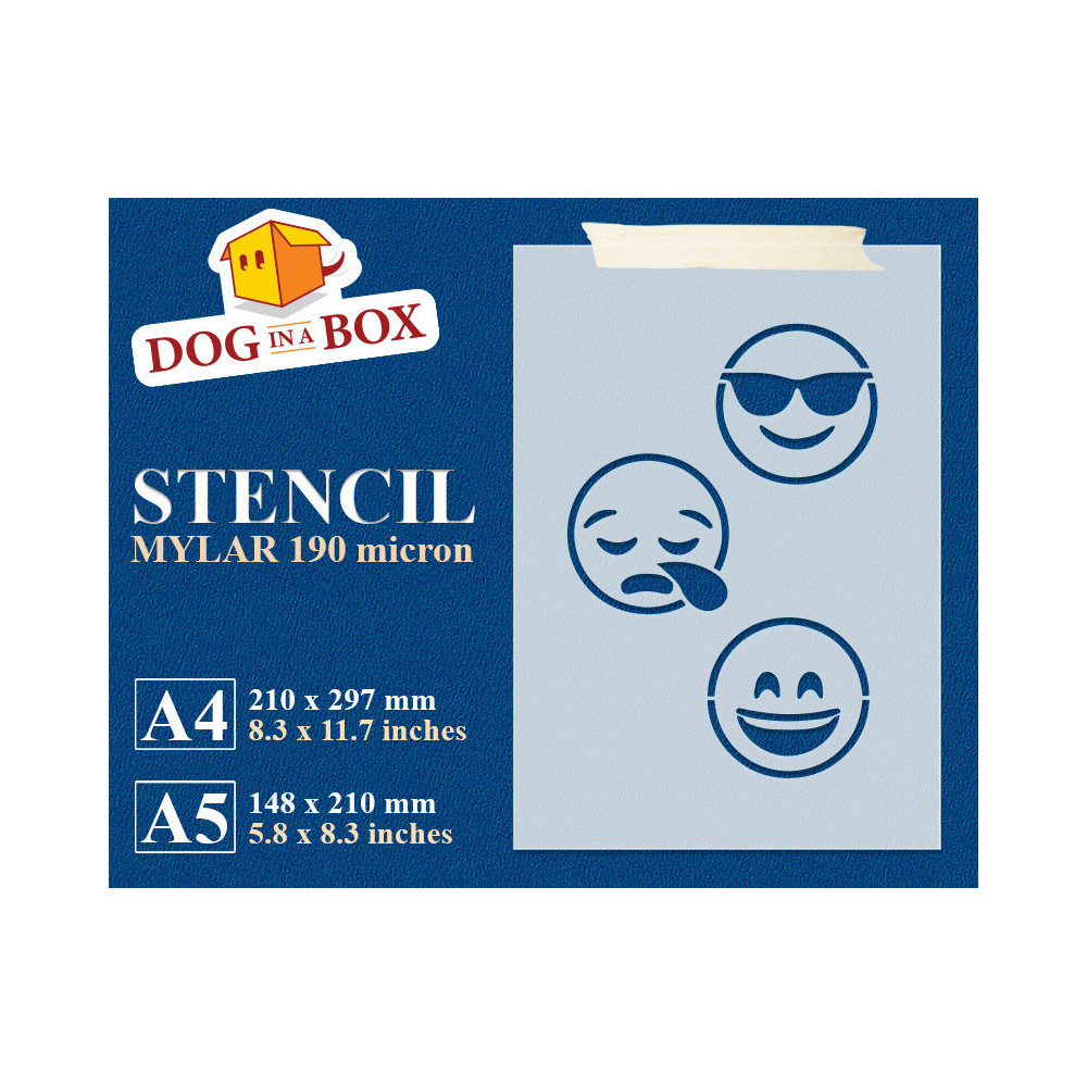 -> Feuille A4 - taille du pochoir: 9 cm x 9 cm (3,5 "x 3,5") chaque émoticône