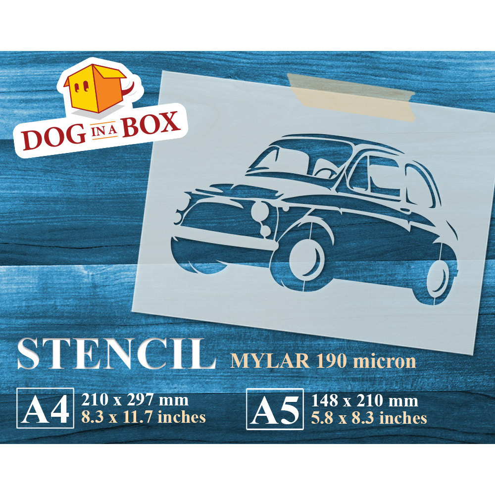 Vintage car stencil n.3 - Pochoir réutilisable Fiat 500 pour panneaux en bois, peinture murale, tissus et décoration de garage