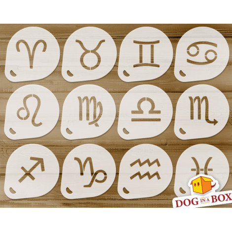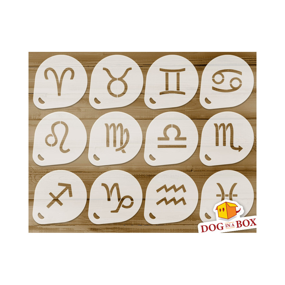 Pochoirs Signes du Zodiaque n.1 (lot de 12) - Pochoirs horoscope poudre de cacao Cookie et Cappuccino