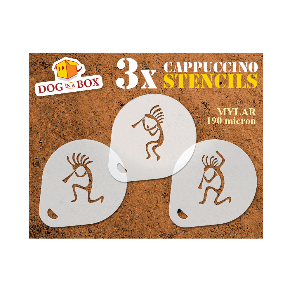 Pochoirs Kokopelli (lot de 3) n.1 - Pochoir décoration en poudre de cacao Cookie et Cappuccino
