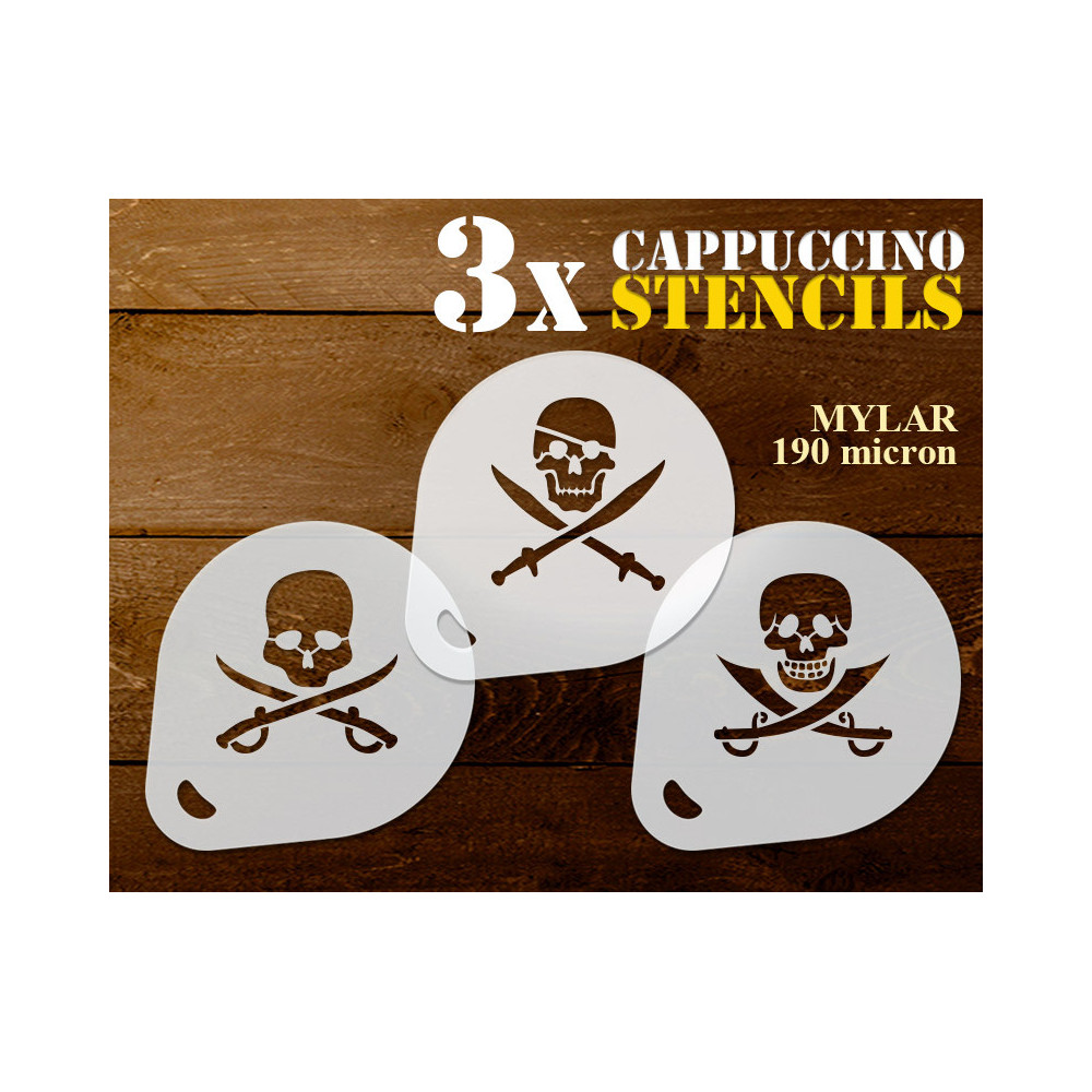Pochoirs de pirate n.3 (lot de 3) pochoir de décoration de poudre de cacao Cappuccino et café - pochoirs de peinture de visage