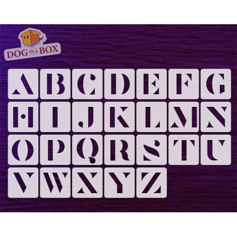 Vous achetez un ensemble de 26 pochoirs de lettres individuelles , en Mylar 190 microns sans danger pour les aliments (approuvé par la FDA) avec un film en polyester résistant aux solvants.
