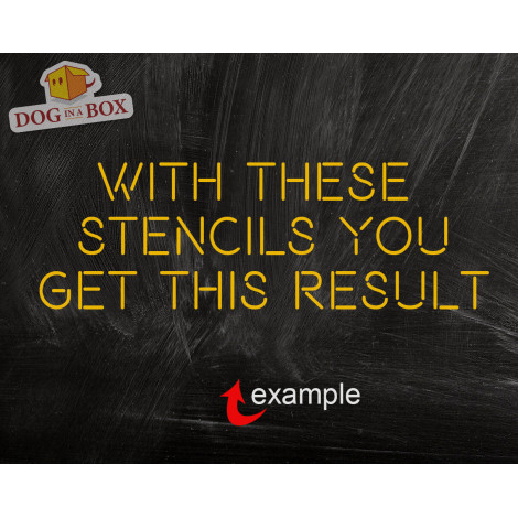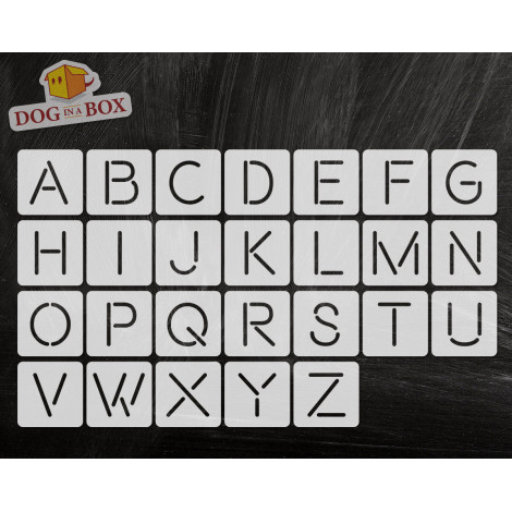 Vous achetez un ensemble de 26 pochoirs de lettres individuelles , en Mylar 190 microns sans danger pour les aliments (approuvé par la FDA) avec un film en polyester résistant aux solvants.