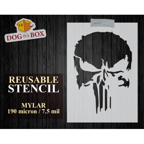 Pochoir tête de mort n.2 - The Punisher Pochoir tête de mort Graffiti pour décoration murale, panneaux en bois et tissus.