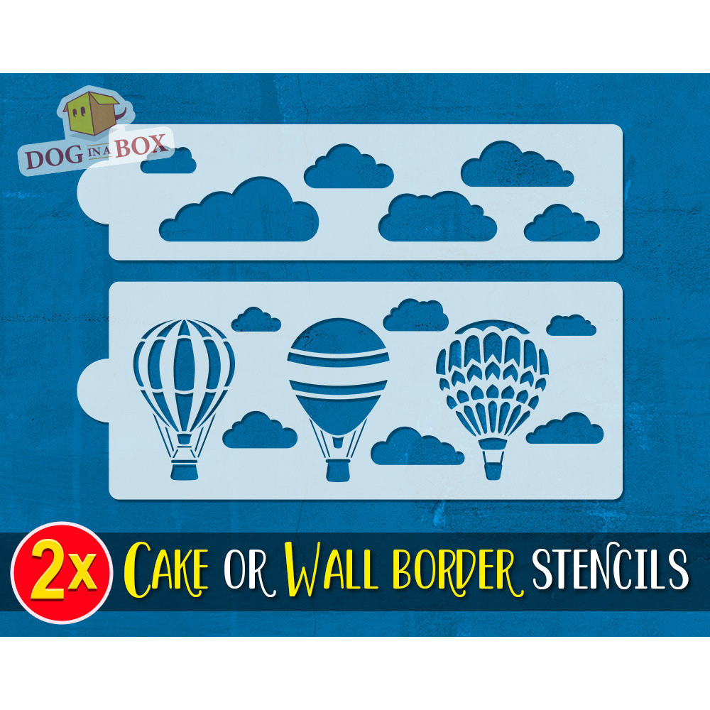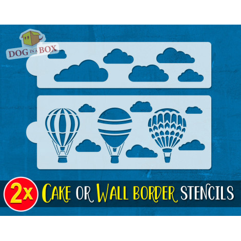 Pochoirs à gâteau ou bordures murales montgolfières n.1 - Lot de 2 pochoirs réutilisables pour décorer gâteaux ou murs.