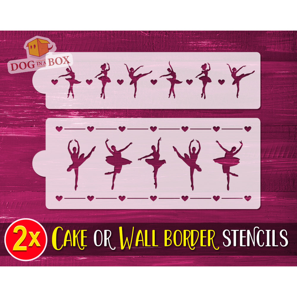 Gâteau ballerine ou pochoirs bordures murales n.1 - Lot de 2 pochoirs réutilisables pour décorer gâteaux ou murs.