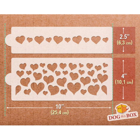 Gâteau coeurs ou pochoirs bordures murales n.1 - Lot de 2 pochoirs réutilisables pour décorer gâteaux ou murs.