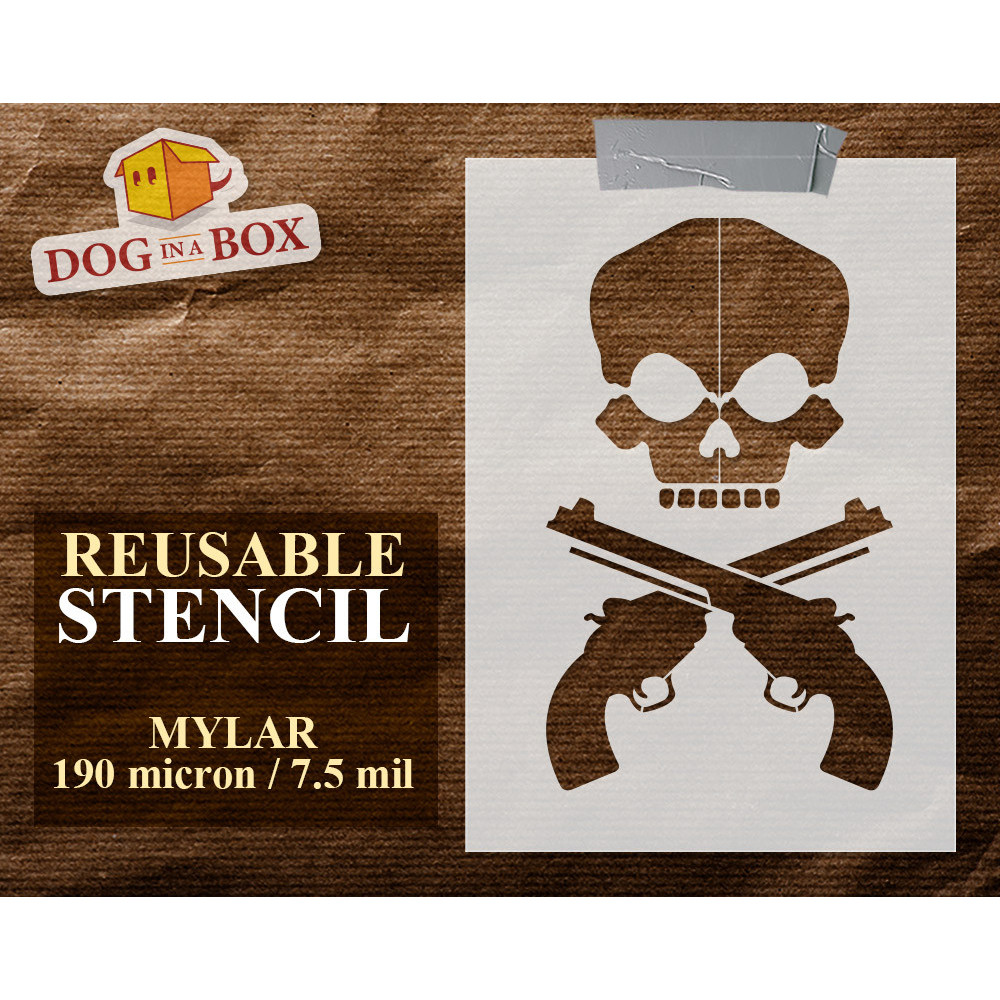 Crâne et pistolets pochoir n.1 - Pochoir réutilisable pour zone de guerre softair et champs de tir