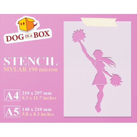 Pochoir pom-pom girl n.1 - Pochoir réutilisable pour décors muraux sport, tissus et panneaux en bois.