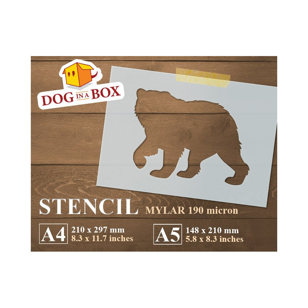 Stencil riutilizzabile grizzly per la pittura su legno, pareti o tessuti.